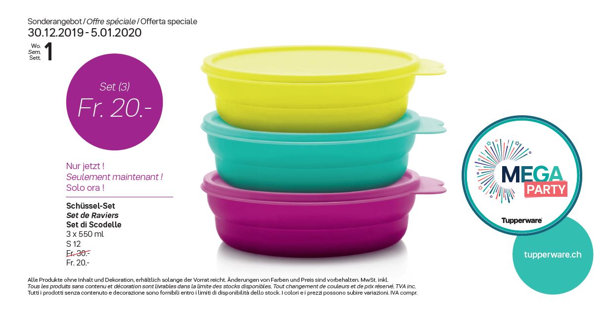 Offre spéciale Tupperware Suisse uniquement du 30 décembre 2019 au 5 janvier 2020 - Set Boîte à pain & Fromagère & beurrier + Raviers