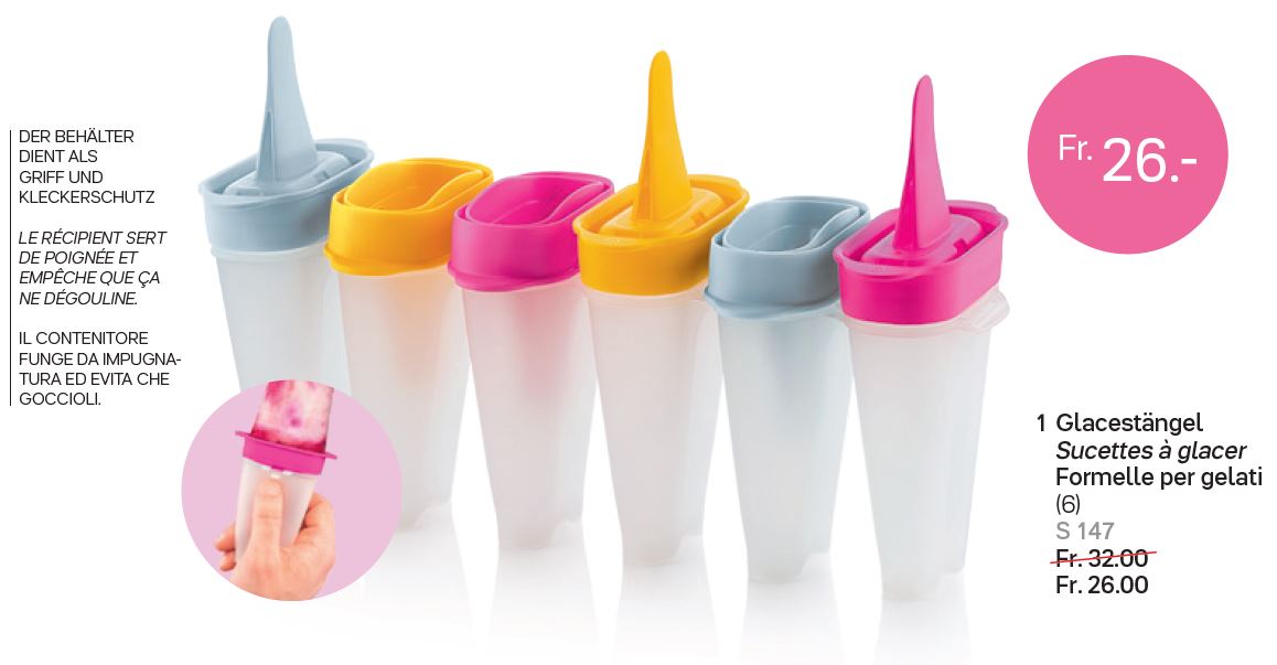 S 147 Sucettes à glacer (6) Enfin de retour! Les préférées des enfants et des mamans (ça coule dans le couvercle = moins de lessives à faire. Pour seulement 26.00 francs au lieu de 32.00