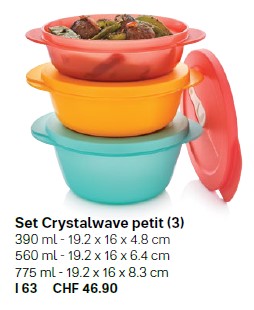 I 064 Set Crystalwave grand (3) – 850 ml + 1,3 L + 1,8 L – CHF 59.90 – Lien catalogue page 63